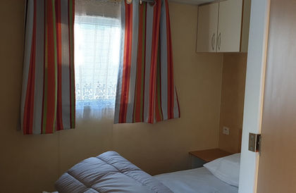 4/5 seater mobile home, 2 bedrooms, bathroom and separate toilet, kitchen area with gas hob, microwave and fridge.
